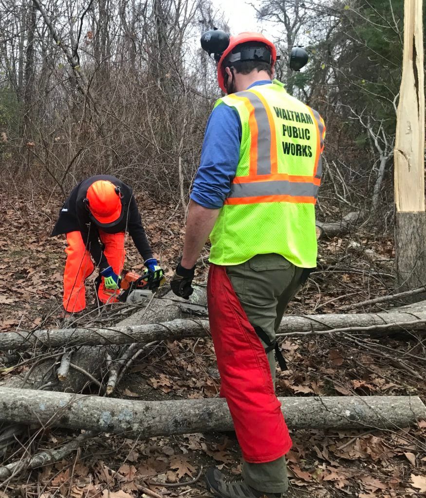 Ranger Adam Green led a chain saw training for 13 WLT volunteer trail stewards at Prospect Hill Park. The WLT has two chain saws used to remove down trees blocking trails in the woods and along the river. The City of Waltham and MA Dept of Conservation & Recreation appreciate our help removing easy obstacles…