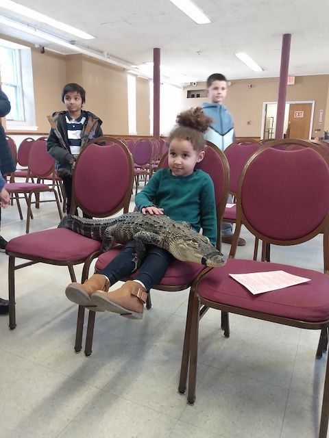 Twenty-eight animal lovers, mainly children and their families, welcomed Matt Gabriel of Animal World Experience and five of his creatures to the Christ Church for a special February school vacation program program. We were thrilled to meet Drago the tegu (a type of Central American lizard), Fettuccine the degu (a South American rodent), Hissy Elliot…
