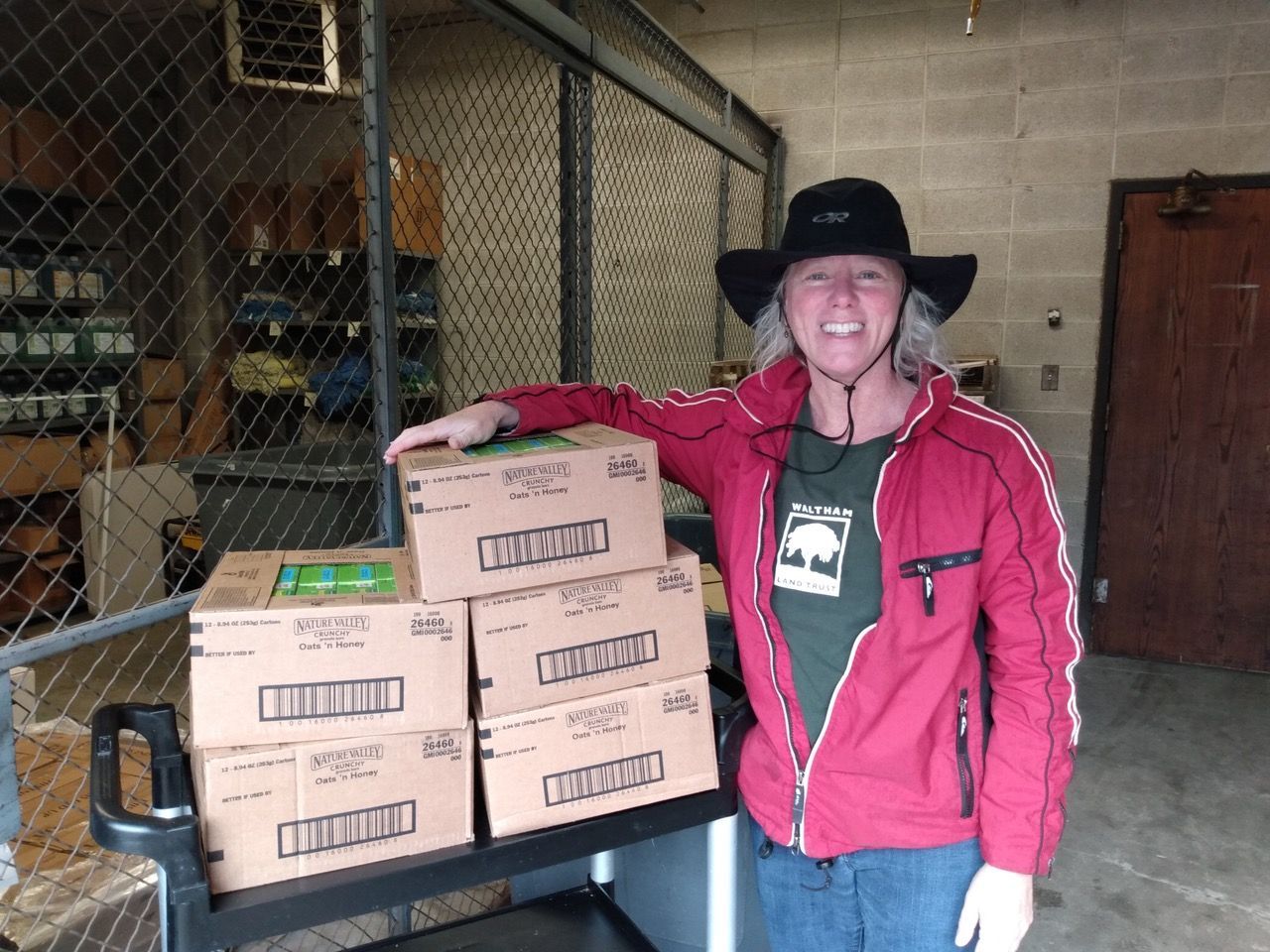 On March 19, 2020 WLT Executive Director Sonja Wadman, and her assistant Hooty, delivered 18 cases of granola bars to the Waltham High School and the Waltham Housing Authority to make sure kids had enough nutritious snacks once schools were closed.
