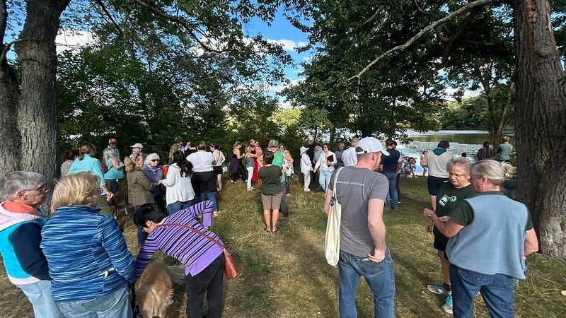 On a gorgeous Sunday, close to 50 people gathered at the WLT’s Lakeview Preserve on Hardy Pond to recognize and thank the Giardina family for their stewardship of their lakefront property and their commitment to ensuring the public’s enjoyment of it by selling the land to WLT. We enjoyed a plaque dedication, brief remarks, refreshments, and games!