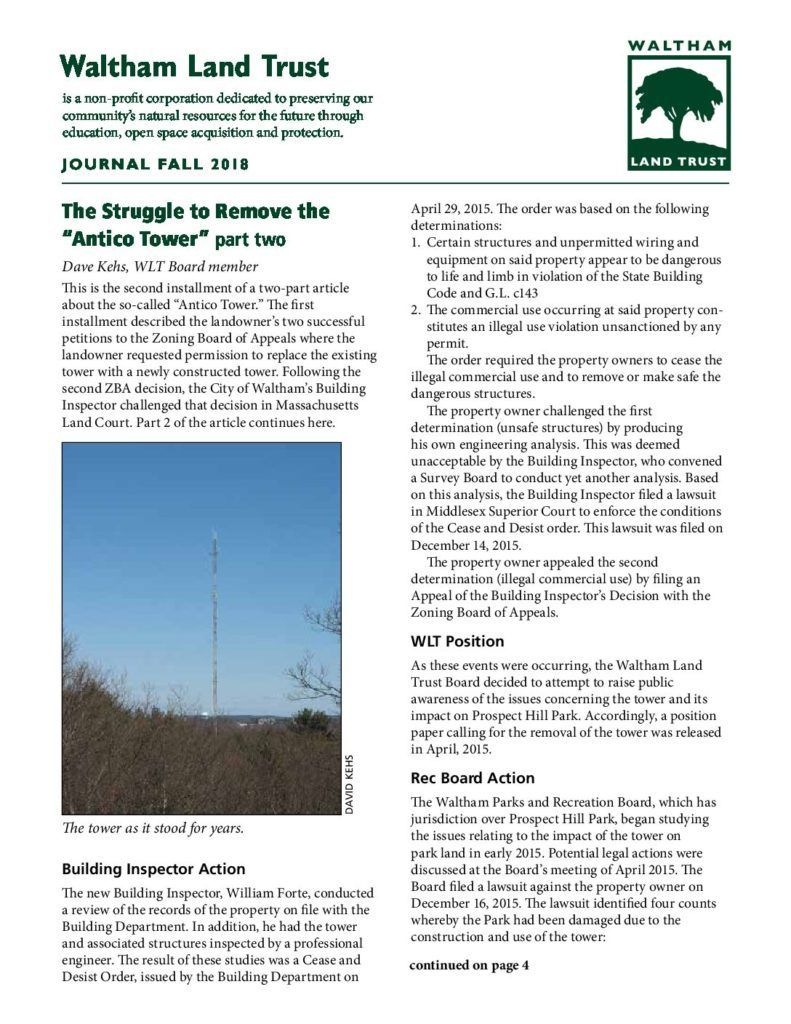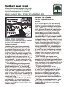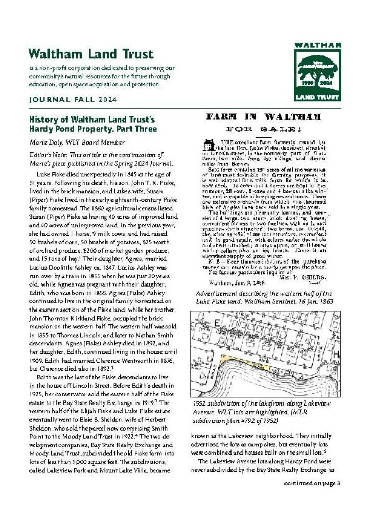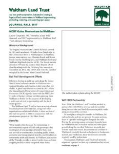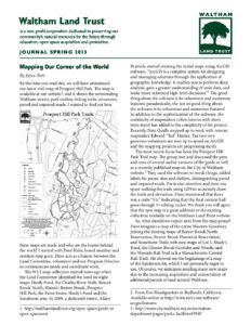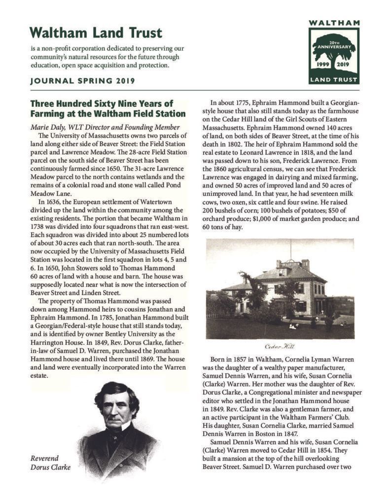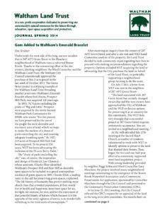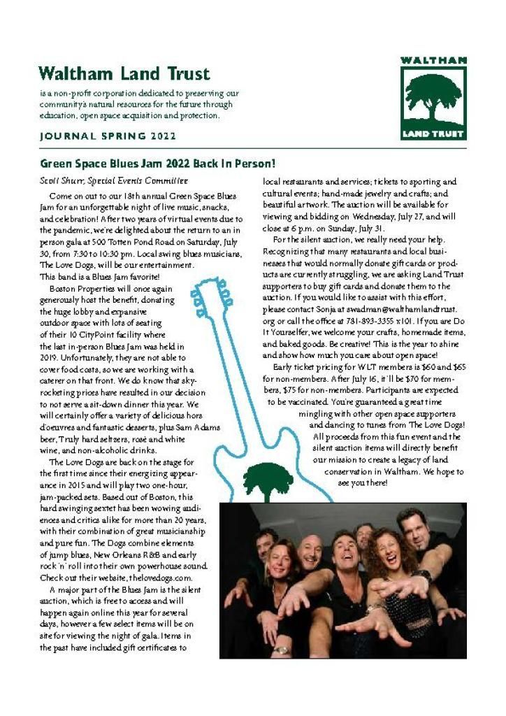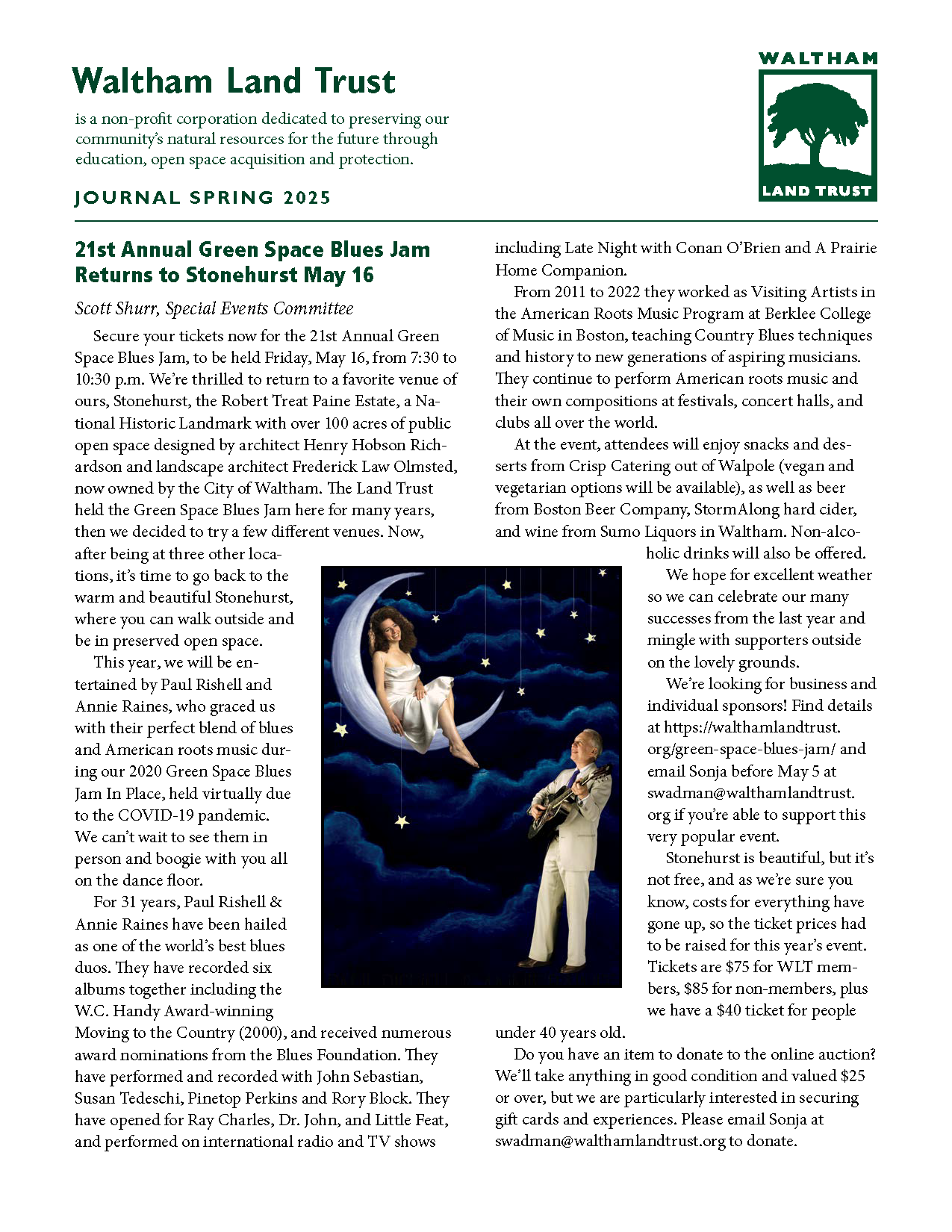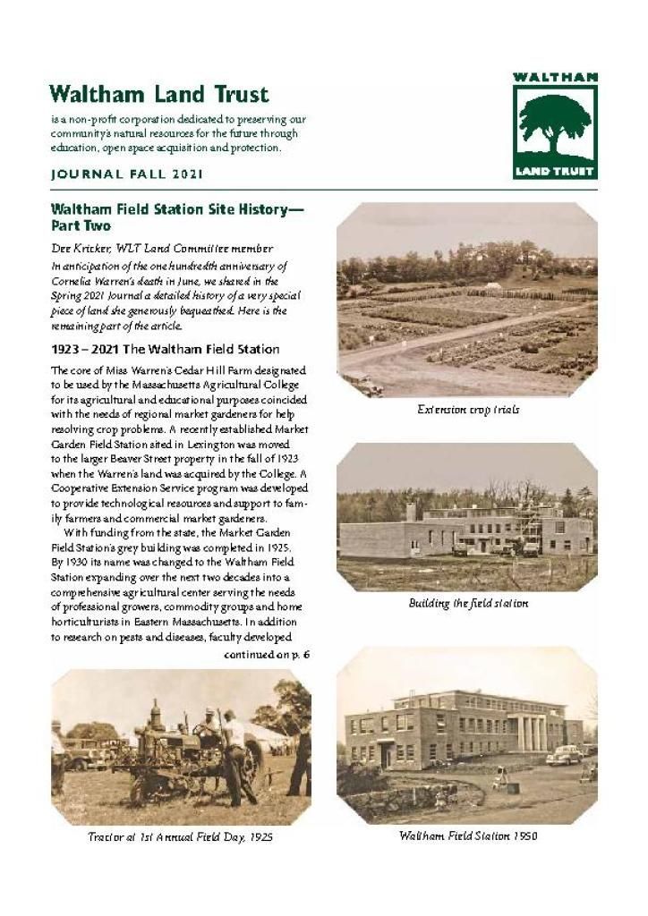 The Waltham Land Trust has been producing newsletters since the spring of 2001. New issues of our newsletter, now called The Journal, are mailed or emailed to members. After a new newsletter is released the previous newsletter is made available here.