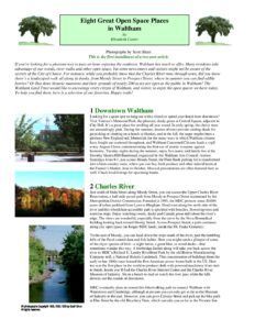 Enjoy looking at the years of open space preservation here in Waltham captured in these newsletters.