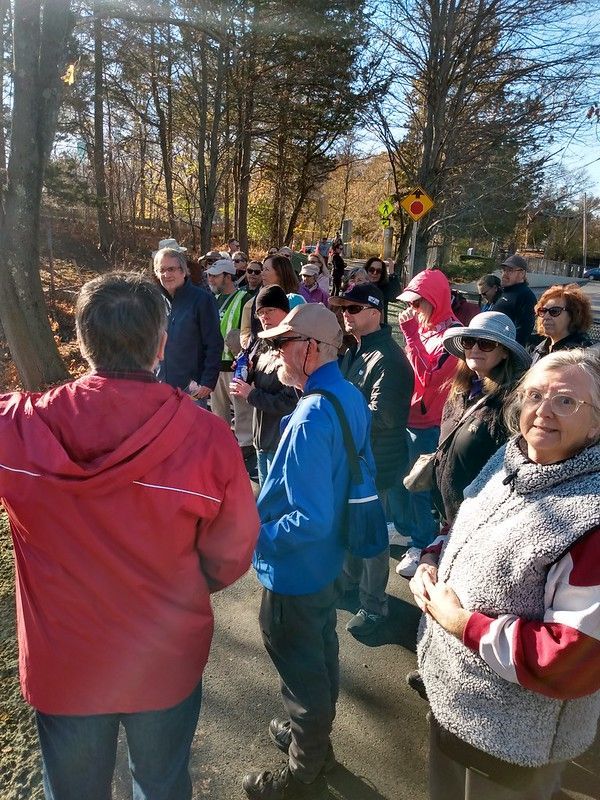 Close to 50 people came on our stroll on the newly renovated path along the Charles River between Prospect Street and the Charles River Museum of Industry & Innovation. That was a lot of people! We’re grateful to the MA Dept. of Conservation & Recreation for investing in this popular trail with invasive plant control, new benches, and a smooth pathway.